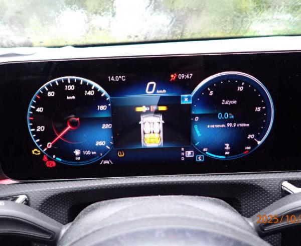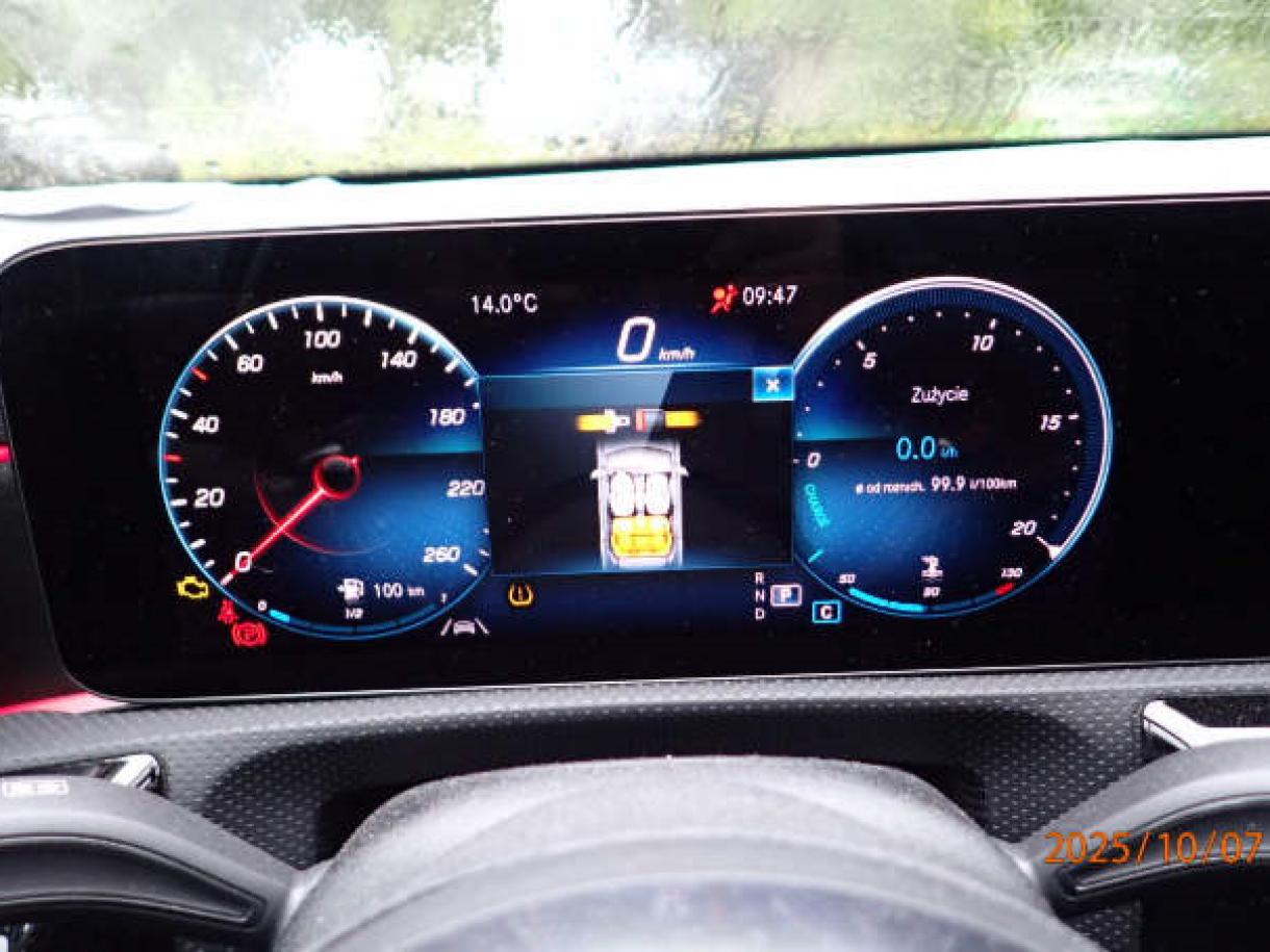 System ochrony pieszych (V) (G), System naglosnienia (V), Przygotowanie do Live Traffic Information (V) (G), Przygotowanieatermiczne do Car Sharing (V), Pakiet Night (V), drogowych (V), Lakier metalik (V), Fotel pasazera regulowany elektrycznie z pamiecia polozenia (V), Fotel kierowcy regulowany elektrycznie z pamiecia polozenia (V), Felgi aluminiowe 18 AMG 5-ramienne z ogumieniem (kod: RQT) (V), Dach szklany panoramiczny - elektryczny (V), Asystent martwego punktu (V), Ogranicznik predkosci - aktywny, Lusterko wsteczne automatycznie przyciemniane, Lusterka boczne skladane elektrycznie, Listwy progowe drzwi, podswietlane, Lampy przednie LED high performance (diodowe), Lakier uni, Uchwyty na kubki z przodu - podwójneUklad hamulcowy sportowy, Tylny podlokietnik, Tuner radiowy cyfrowy DAB, Tirefit - zestaw do naprawy przebitej opony, Tempomat, Gniazda USB, dodatkowe MICROCUT, Gasnica Tapicerkalaczona - imitacja skóry ARTICO / mikrofaza, Fotele przednie sportoweFotele przednie z 4 stopniowa-elektryczna regulacja ledzwi, Fotele przednie podgrzewane, pojazdu bez uzycia kluczyka(kod: RQS), Elementy wykonczenia wnetrza - aluminium System KEYLESS-GO - dostep i uruchamianie, Dywaniki welurowe AMG, Czytnik linii papilarnychDYNAMIC SELECT - wybór charakterystyki trybu jazdy, Automatycznie odlaczana poduszka pasazera, Asystent utrzymania linii pasa ruchu - aktywny, Asystent ukladu kierowniczego - aktywny, Asystent parkowania aktywny z PARKTRONIC, Podsufitka materialowa - czarnawysiadania, Pakiet asystenta parkowania z kamera 360, Oswietlenie Ambient, Oparcie tylnej kanapy, skladane, Modul komunikacyjny LTE dla Mercedes connect me, Zawieszenie komfortowe z regulacja przeswitu, Wyswietlacz multimedialny 10,25 cali, Wyswietlacz kierowcy 10,25 cali, Wycieraczki przedniej szyby z czujnikiem deszczu, Uslugi Zdalne, THERMOTRONIC, biegówKlimatyzacja komfortowa 2-strefowa -, Kierownica z galwanizowanymi manetkami zmiany, Kamera ulatwiajaca parkowanie - tylKierownica sportowa, wielofunkcyjna w skórze nappa, emergency call system, System powiadamiania o wypadku Mercedes-Benz, System nawigacji satelitarnej na dysku twardym, System nawigacji MBUX premiuim, System multimedialny MBUX, System bezprzewodowegoladowania telefonuFelgi aluminiowe 18 AMG 5-ramienne z ogumieniem, oponach, System aktywnego monitorowania cisnienia w, Sygnalizacja spadku cisnienia w oponach, Stylizacja nadwozia AMG, Schowek w konsolisrodkowej z wysuwana pokrywa, Rozszerzone funkcje MBUX, Przygotowanie do uslug nawigacyjnych, Poduszka powietrzna chroniaca kolana kierowcy, Asystent limitu predkosciAsystent ostrzegajacy o niebezpieczenstwie podczas, Aktywny asystent ukladu hamulcowego Oslony przeciwsloneczne - wysuwane zAlarm antywlamaniowy z zabezpieczeniem przed podswietlanym lusterkiem odholowaniem i systemem zabezpieczenia wne, Adaptacyjny ukladswiatel drogowych