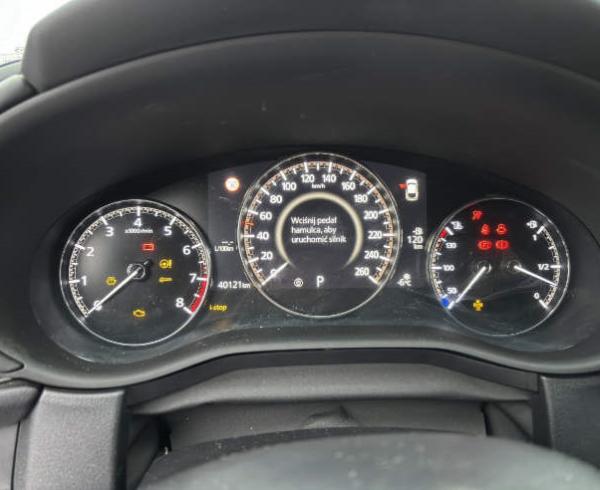 Lakier metalik (trójwarstwowy) Soul Red, Poduszka powietrzna kolanowa kierowcy, Podsufitka jasna, Podlokietnik z przodu, Modul do integracji wyswietlacza ze smartfonem, sie automatycznie), dotykowym, Lusterko boczne elektrochromatyczne (po stronie, Tuner radia cyfrowegoUklad wspomagajacy ruszanie na wzniesieniu (HLA), Tempomat adaptacyjny (MRCC), Tapicerka materialowa, Swiatla tylne diodowe (LED), System wykrywajacy znuzenie kierowcy - Driver Alert, ruchu (LAS), Kamera cofaniaKierownica i dzwignia zmiany biegów pokryte skóra, Immobilizer System wspomagajacy hamowanie (zapobiegajacy, Autohold, TSR, Gniazdo USB (2x)G-Vectoring Control+ - zaawansowany system, Gniazdo 12V System monitorujacy ruch poprzeczny przy cofaniu, Fotele przednie podgrzewane, Felgi aluminiowe 16 Gray z ogumieniem, System e-Call - system powiadamiania ratunkowego, Dywaniki podlogowe drogowych na mijania (HBC), DSC - system stabilizacji toru jazdy System automatycznego przelaczaniaswtatel, Dostep bezkluczykowy, Czujniki parkowania, przód i tyl, Czujnik zmierzchu, Czujnik deszczu, Pokretlo wielofunkcyjnepolaczonych, Poduszki powietrzne przednie, Poduszki powietrzne boczne, Zestaw naprawczy opony, Zestaw glosnomówiacy Bluetooth, Zegary cyfrowe, Zamek centralny z pilotem, Wyswietlacz Head-up (na przedniej szybie), kierowcy) Wyswietlacz centralny 8,8" ze sterowaniemLusterko wsteczne fotochromatyczne (przyciemniajace, Wycieraczki przedniej szyby podgrzewane, kierunkowskazami, Lusterka boczne regulowane elektrycznieLusterka boczne w kolorze nadwozia z, TCS - system kontroli trakcji, Lakier uniLusterka boczne podgrzewane i skladane elektrycznie, Kurtyny powietrzne, Klimatyzacja automatyczna, dwustrefowa, Kierownica podgrzewana, kolizjom przy malej predkosci) - A-SCBSSystem wspomagajacy utrzymanie pojazdu w pasie, System rozrywki ilacznosci - MZD Connect, zwiekszania przyczepnosci pojazdu System rozpoznajacy znaki ograniczenia predkosci -Hamulec postojowy elektromechaniczny z funkcja, System nawigacji Mazda, (RCTA), System monitorowania martwego pola BSM, System monitorowania cisnienia w ogumieniu TPMS, Elektrycznie sterowane szyby przednie i tylne SBS, EBD - elektroniczny rozdzial sily hamowania System intelignentnego wspomagania hamowania -, EBA - system wspomagania hamowania awaryjnego, System audio (8 glosników), Spryskiwacze reflektorów, Reflektory przednie, diodowe LED, Radio FM, Przycisk do uruchamiania silnika, AlarmAplikacja MyMazda - pakiet darmowych uslug, ABS