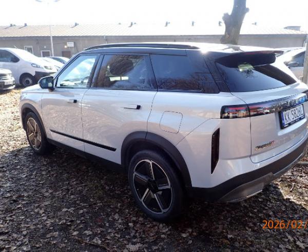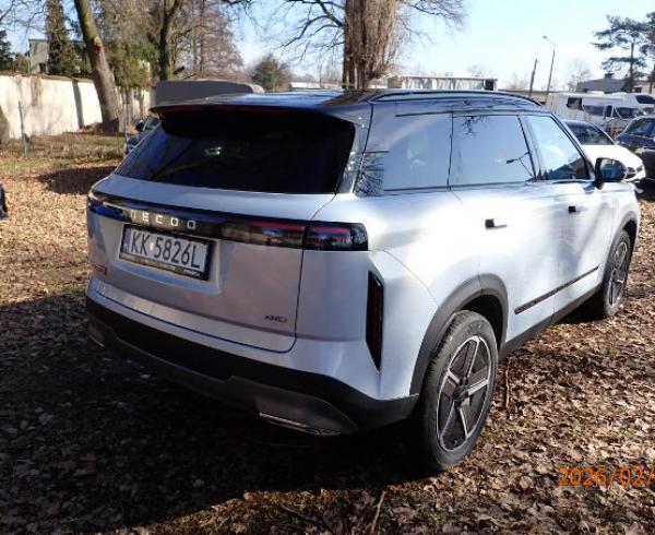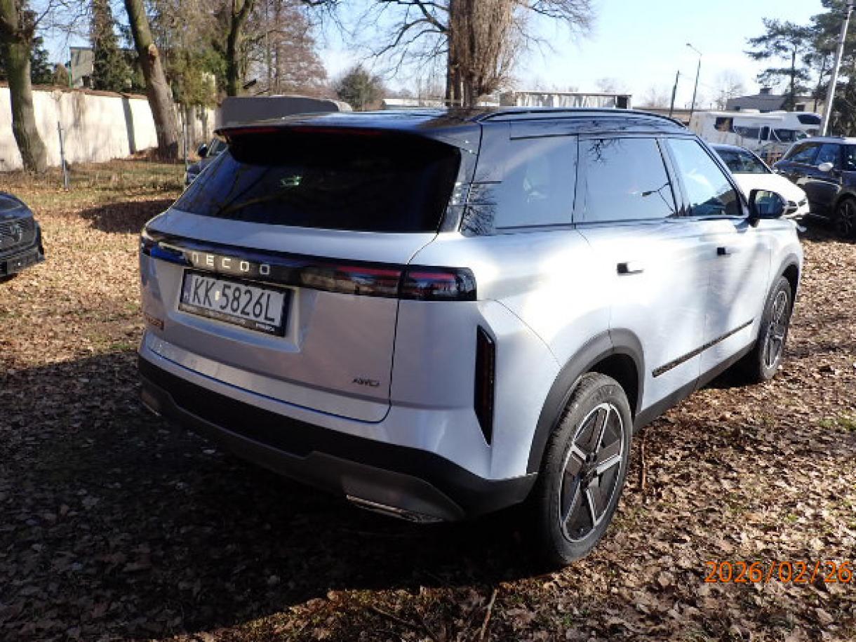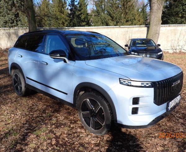 Lakier dwukolorowy (nadwozie dwukolorowe) (G), elektrycznie, z wbudowanymi kierunkowskazami, Lakier perlowyLusterka boczne sterowane, podgrzewane i skladane, ruchu (LDW)System ostrzegania przed kolizja podczas cofania, silnika z pilota zdalnego sterowania)System ostrzegajacy o niezamierzonej zmianie pasa, temperaturyKlimatyzacja uruchamiana zdalnie (po uruchomieniu, Klamki lakierowane w kolorze nadwoziaKlimatyzacja dwustrefowa z automatyczna regulacja, ekologiczna, Kierownica podgrzewanaKierownica wielofunkcyjna wykonczona skóra, plasko, Kanapa tylna podgrzewanaKanapa tylna skladana w proporcji 60:40, skladana na, Immobilizer, funkcjami pojazdu za pomoca polecen glosowych, HoldHello Jaecoo - system inteligentnego sterowania, Hamulce tarczowe tylneHamulec postojowy elektryczny (EPB) z funkcja Auto, 000 kmSystem bezkluczykowego dostepu i uruchamiania, Gniazdo 12V z przoduGwarancja podstawowa na pojazd, 7 lat z limitem, Gniazdo 12V w bagazniku, funkcja szybkiegoladowaniaGniazda USB-A oraz USB-C w pierwszym rzedzie z funkcja szybkiegoladowania, Radio z DAB+lusterek zewnetrznych Gniazda USB-A oraz USB-C w drugim rzedzie z, Poduszki powietrzne kierowcy i pasazera z przodu, Poduszki powietrzne boczne foteli przednich, Poduszka powietrzna centralna z przodu, odcinka ledzwiowegoFotel pasazera regulowany elektrycznie w 4., chlodzenia, Felgi aluminiowe 19", z ogumieniem 235/50 Pasy bezpieczenstwa kierowcy i pasazera z regulacjaFotel kierowcy regulowany elektrycznie w 6., Ostrzezenie o przekroczeniu predkosci, Ogranicznik predkosci, Play, AutoalarmBlokada elektroniczna zapobiegajaca otwarciu tylnych Obsluga bezprzewodowa Android Auto i Apple Car, Asystentswiatel drogowych, funkcja automatycznego hamowania (RCTA+RCTB), Ladowarka bezprzewodowa o mocy 50W, Lusterko wsteczne fotochromatyczne, Lusterka zewnetrzne lakierowane, System ostrzegania przed otwarciem drzwi (DOW)System przypominajacy o zapieciu pasów bezpieczenstwa z przodu i z tylu, System ostrzegania przed kolizja z przodu (FCW), (RCW), kierunkachKolo zapasowe dojazdowe, Kolumna kierownicy regulowana manualnie w 4., przekatnej 14.8" z menu w jezyku polskimSystem oczyszczania powietrza w kabinie, System monitorowania uwagi kierowcy (DMS)System multimedialny z ekranem dotykowym o, lusterkach (BSD), System monitorowania cisnienia w oponach (TPMS)System monitorowania martwego pola widzenia w, System kontroli zjazdu (HDC), System kontroli predkosci inteligentny (SAS), System kamer 540 stopni, poprzedzajacego, wykrywania pojazdów, pieszych oraz rowerzystówSystem informujacy o odjechaniu pojazdu, (EBD)System hamowania awaryjnego (AEB) z funkcja, pojazduSystem elektronicznego rozdzialu sily hamowania, Hamulce tarczowe przednie, wentylowane, System audio Sony z 8 glosnikamiSystem Auto-Start-Stop, Spojler tylny, Skrzynia biegów automatyczna, dwusprzeglowa DCT7, Relingi dachowe, Reflektory LED, Reflektory automatyczne, Fotele przednie wentylowane (siedzisko i oparcie) Poduszki powietrzne boczne kurtynowe z przodu i zFunkcja opóznionego wylaczania reflektorów "Follow tylu me home" Funkcja pamieci polozenia fotela kie, Fotele przednie podgrzewane (siedzisko i oparcie), Poduszka kolanowa kierowcykierunkach, Podlokietnik tylnej kanapy z uchwytami na kubki, kierunkach Podlokietnik przedni ze schowkiem i funkcjaFotel kierowcy z elektryczna regulacja podparcia, wysokosci, Drzwi bagaznika otwierane elektrycznie czesci pojazdu (z mozliwoscia wyboru koloru), Dach panoramiczny z elektrycznie sterowana roleta Oswietlenie ambientowe wnetrza w przedniej i tylnej, Czujniki parkowania przednie i tylne, Bluetooth, drzwi przez dzieci, Nawigacja, Nawiewy klimatyzacji na drugi rzad siedzen, kanapy, Asystent ograniczenia predkosci (SLA)Asystent ruchu poprzecznego podczas cofania z Mocowania ISOFIX dla zewnetrznych foteli tylnej, Asystent hamowania (BAS), Asystent awaryjnego utrzymania pasa ruchu (ELK)
