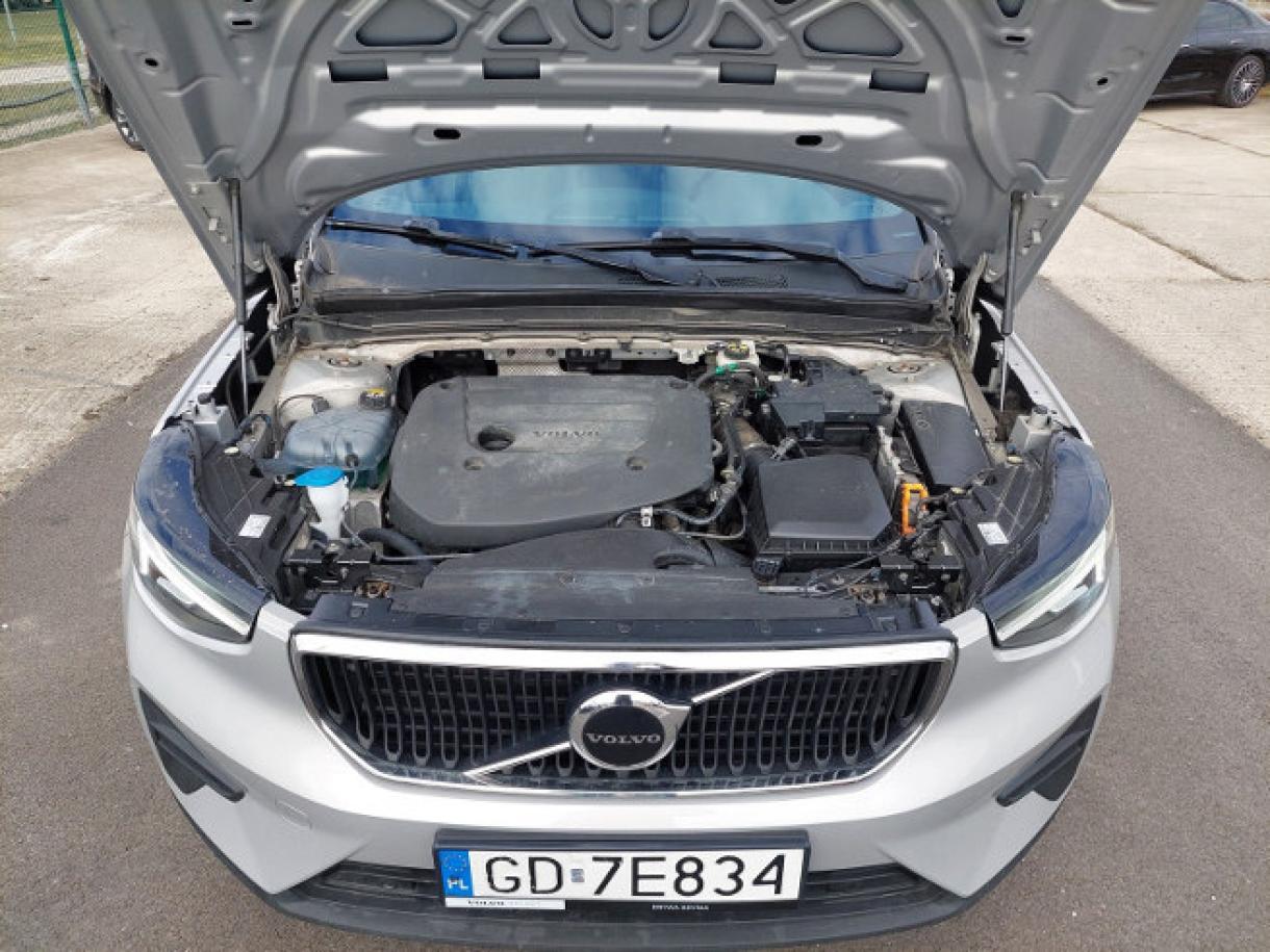 Pakiet Park Assist (V), Pakiet Driver Assist (V), Pakiet Climate (V), Lakier metalizowany (V), Ladowarka indukcyjna do smartfona, Zbiornik paliwa o pojemnosci 54 litrówZestaw do naprawy przebitej opony, Zaglówki tylne skladane manualnie, Wyswietlacz cyfrowy zegarów kierowcy, 12,3-cala, Wyswietlacz centralny wielofunkcyjny, 9 cali, Wylacznik poduszki powietrznej pasazera, Wykonczenie szyb bocznych w czarnym kolorze, Usluga Volvo On CallWspomaganie ukladu kierowniczego personalizowane, wysoki polysk, Gniazdo USB (x2) - tylGrill przedni w kolorze czarnym wykonczonym na, Gniazdo 12V w przestrzeni bagazowej, Trójkat ostrzegawczy, Funkcja Auto HoldFunkcja Lane Keeping Aid - utrzymywanie pasa ruchu, Szyby boczne i tylna z hartowanego szklaledzwiowego Fotele przednie z mechanicznie regulowanym podparciem ud, Fotel pasazera z mechaniczna regulacja wysokosci szyjnego (WHIPS), Fotel kierowcy regulowany manualnie System zabezpieczen przed urazami kregoslupa, Elastyczna siatka przedzialu bagazowegoFelgi aluminiowe 18, 5-ramienne Silver z ogumieniem, uzytkowników drogi o naglym hamowaniu, Relingi dachowe - jasne, Reflektory przednie LED, Radio cyfrowe DAB+, Distance Alert - uklad ostrzegania o zbyt malej, Poduszka powietrzna chroniaca kolana kierowcy, Blokada tylnych drzwi, elektrycznaCollision Warning - ostrzezenie o ryzyku kolizji z f. Podswietlane lusterka w oslonach przeciwslonecznych, Apteczka samochodowa, Android Auto i Apple Carplay, Nakladki progowe, metalowe z napisem Volvo, Lacznosc Bluetooth, przyciemniajace sie automatycznie, Lusterka boczne skladane elektrycznieLusterko wsteczne oraz lusterka boczne, Lakier uni, Kluczyk zintegrowany z pilotem zamka centralnego, Klimatyzacja automatyczna, 2-strefowa, Klapa bagaznika otwierana elektrycznie, Klamki drzwi lakierowane w kolorze nadwozia, (regulowane), ImmobilizerKeyless entry - bezkluczykowy dostep do samochodu, Uchwyty na torbe w bagaznikuUklad kontroli zjazdu ze wzniesienia (HDC), Uchwyt na bilety parkingowe, Tylne oparcie skladane, dzielone, Tempomat, wnetrze w kolorze czerni, Tapicerka materialowa City Block w tonacji szarosci,, Swiatla przeciwmgielne przednie, Fotele przednie z 4-stopniowa regulacja odcinka, System dogrzewania pojadu po wylaczeniu silnika, System audio High Performance Sound, Sterowanie systemem audio z kierownicy, drogowych, Dywaniki tekstylneEBL (Emergency Brake Lights) - ostrzeganie innych Road Sign Info - system rozpoznawania znaków, DSTC - uklad kontroli trakcji i stabilnosci, Popielniczkaodleglosci od poprzedzajacego pojazdu, Czujniki zapiecia pasów pasazera, kurtyny powietrzne, Czujnik wilgoci Poduszki powietrzne czolowe i boczne dla kierowcy i, Czujnik deszczu, rozpoznawania pieszych i rowerzystów, Podlokietnik przedni z uchwytami na kubki, Pakiet uslug Digital Sevices, Oswietlenie wnetrza poziom III, foteli), ABSAlarm Volvo Guard z czujnikiem przechylu oraz ruchu Napinacze pasów bezpieczenstwa (dla wszystkich