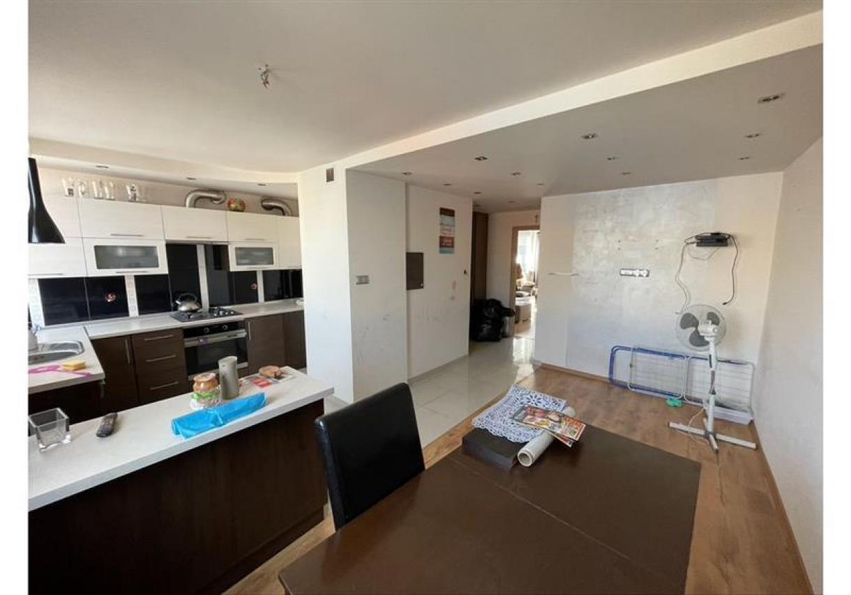 Nieruchomość nie jest zamieszkała. Lokal położony jest na czwartym piętrze z ekspozycją okien na wschód i zachód. Powierzchnia użytkowa mieszkania jest równa 56,05 m2 a lokal składa się z 3 pokoi, w tym jednego połączonego z aneksem kuchennym (11,3m2, 15,8m2 oraz 21,2m2), łazienki z WC (2,8m2) i przedpokoju (4,8m2). Do mieszkania przylega loggia (2,5m2) i przynależy piwnica nr 15 (5,46 m2). Łączna powierzchnia użytkowa mieszkania wraz z powierzchnią pomieszczeń przynależnych jest równa 61,51 m2. Stan techniczny lokalu oceniono jako dobry, a standard pomiędzy średnim i ponadprzęciętnym.