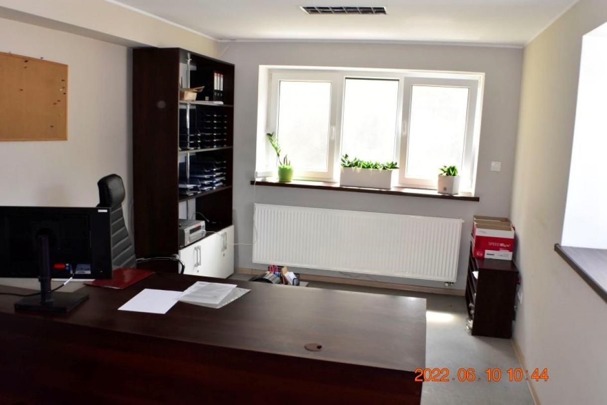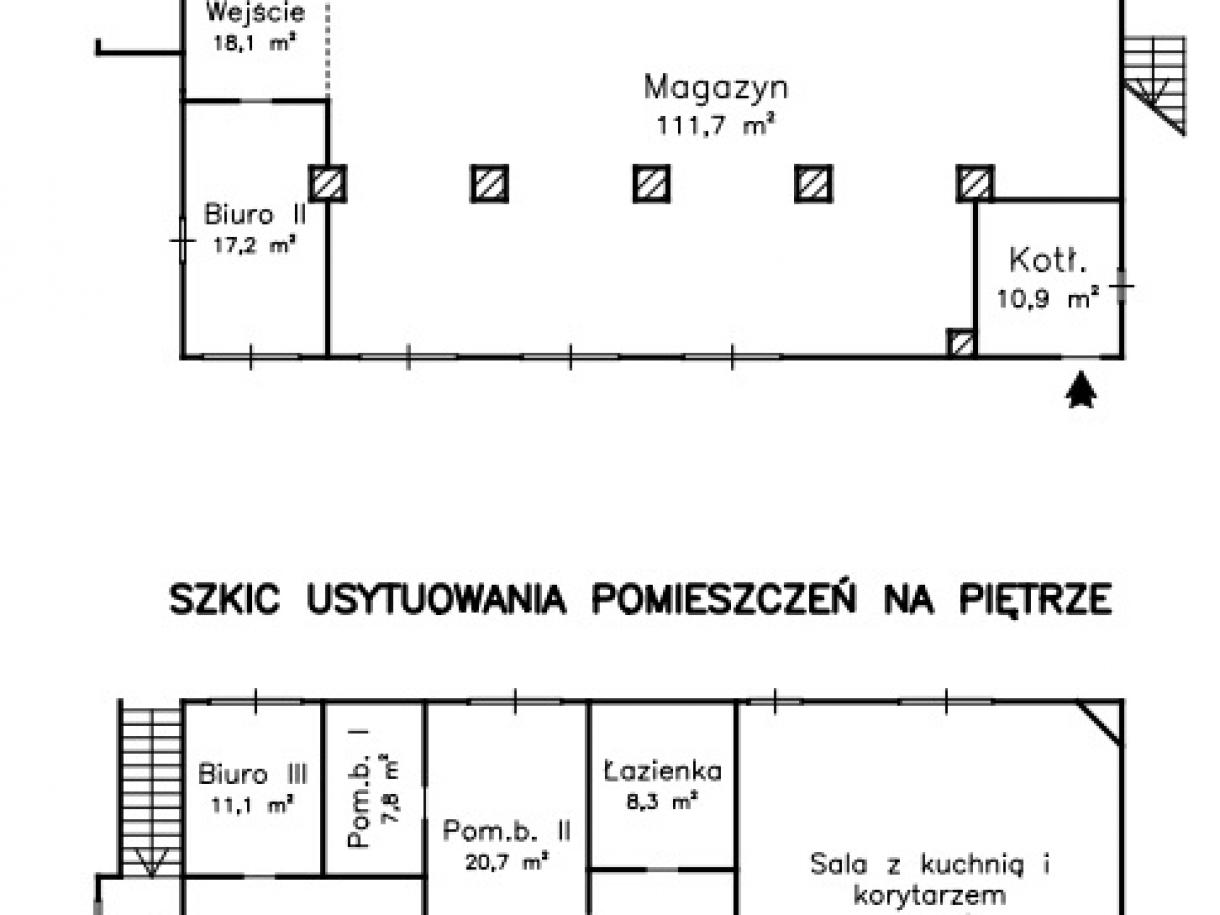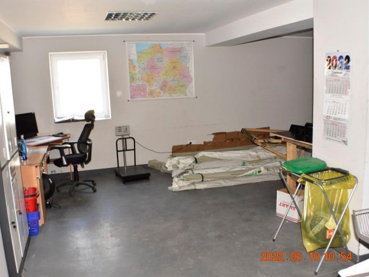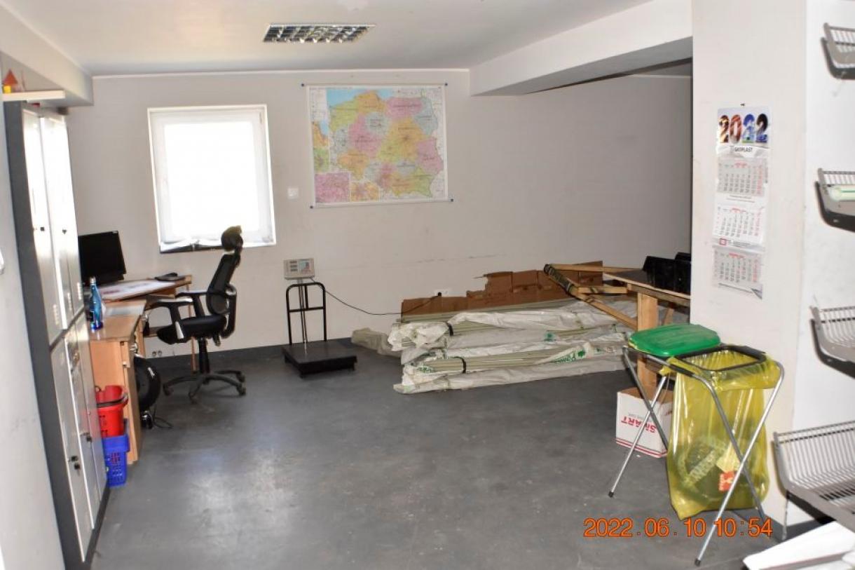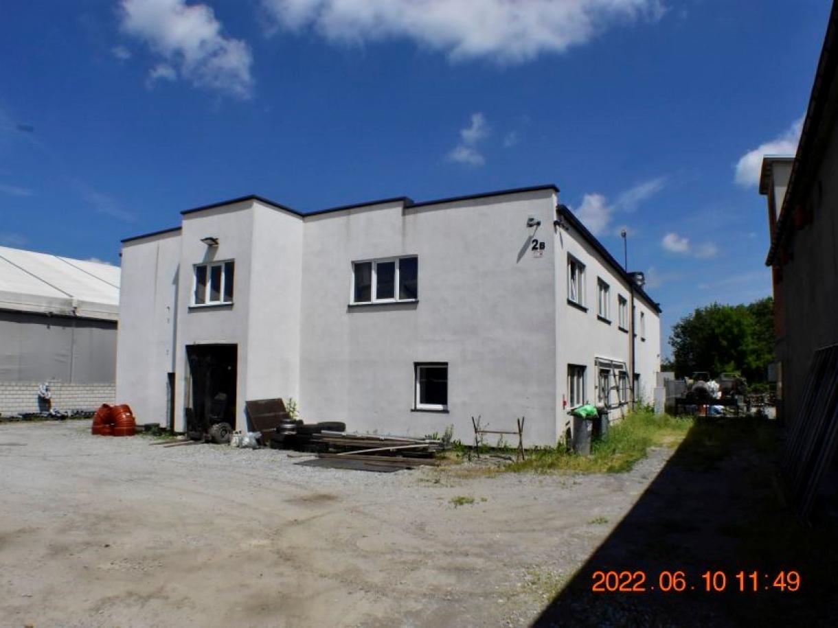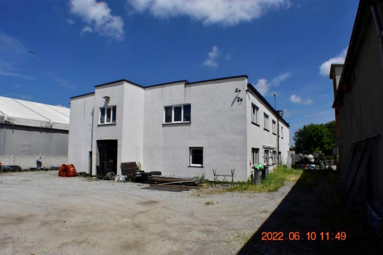 Działka w kształcie trapezu: szer. 21m i dł. 6-83m, teren płaski. Dojazd - działka 14/6 posiada pośredni dostęp (przez działki 14/7 i 15/3) do drogi publicznej, ogrodzona z jednym wjazdem, częściowo utwardzona szutrem, częściowo zabudowana budynkiem magazynowo-biurowym oraz częściowo porośnięta niezagospodarowaną zielenią. Budynek magazynowo-biurowy: obiekt wolnostojący, niepodpiwniczony, dwukondygnacyjny i przykryty płaskim dachem. Pow. zabud. 288m2, pow. całkowita 576m2, pow. użytk. 402,5m2,wys. pom. 2,36-2,47m. Budynek wybudowany około 50 lat temu w technologii tradycyjnej, ściany murowane z cegły i pustaków żużlobetonowych, stropy żelbetowe monolityczne, dach płaski dwuspadowy pokryty papą na lepiku, stolarka - PCV z szybą zespoloną; drzwi drewniane. Budynek wyposażony w instalację wodociągową, kanalizacyjną, elektryczną, wentylacji grawitacyjnej; ogrzewanie - indywidualne: centralne zasilanie z kotła na opał stały.