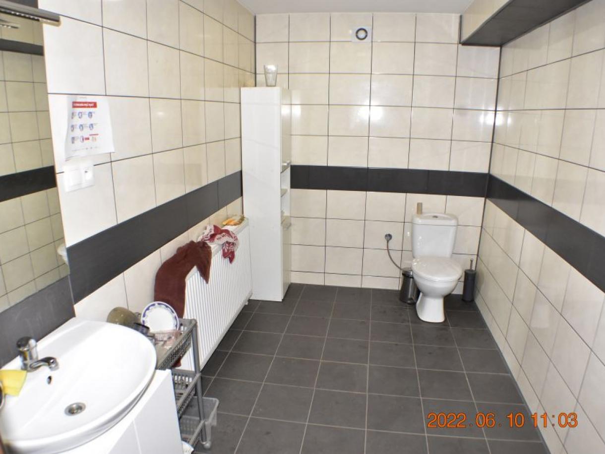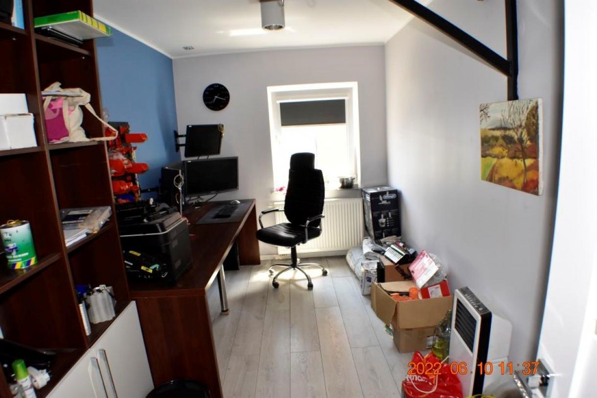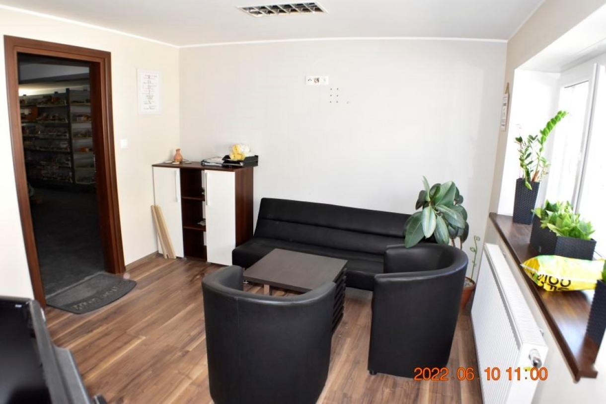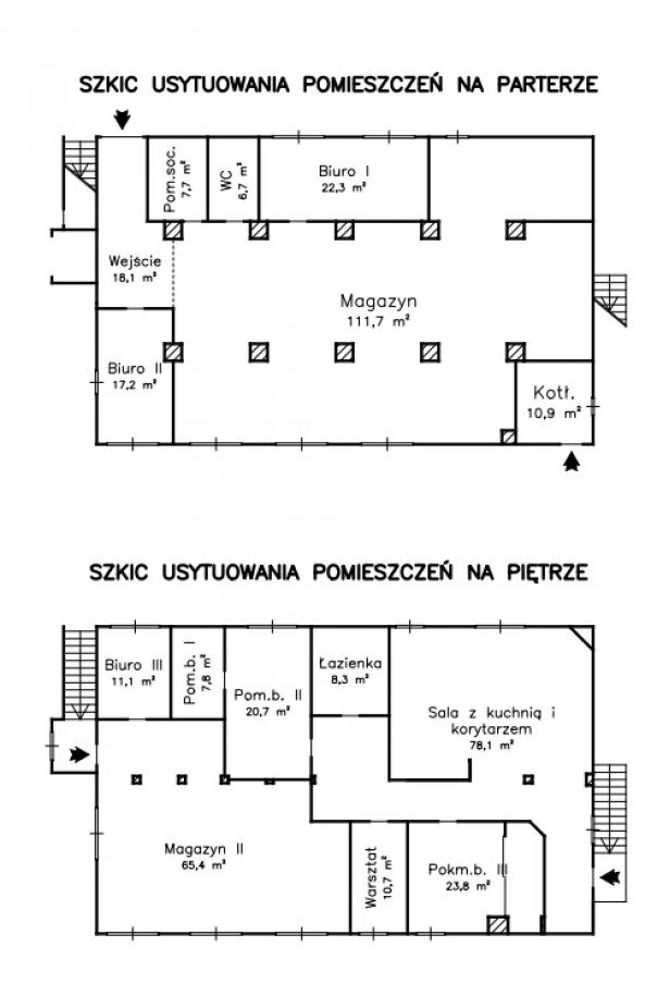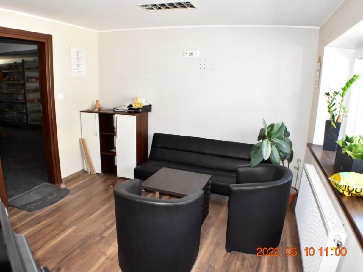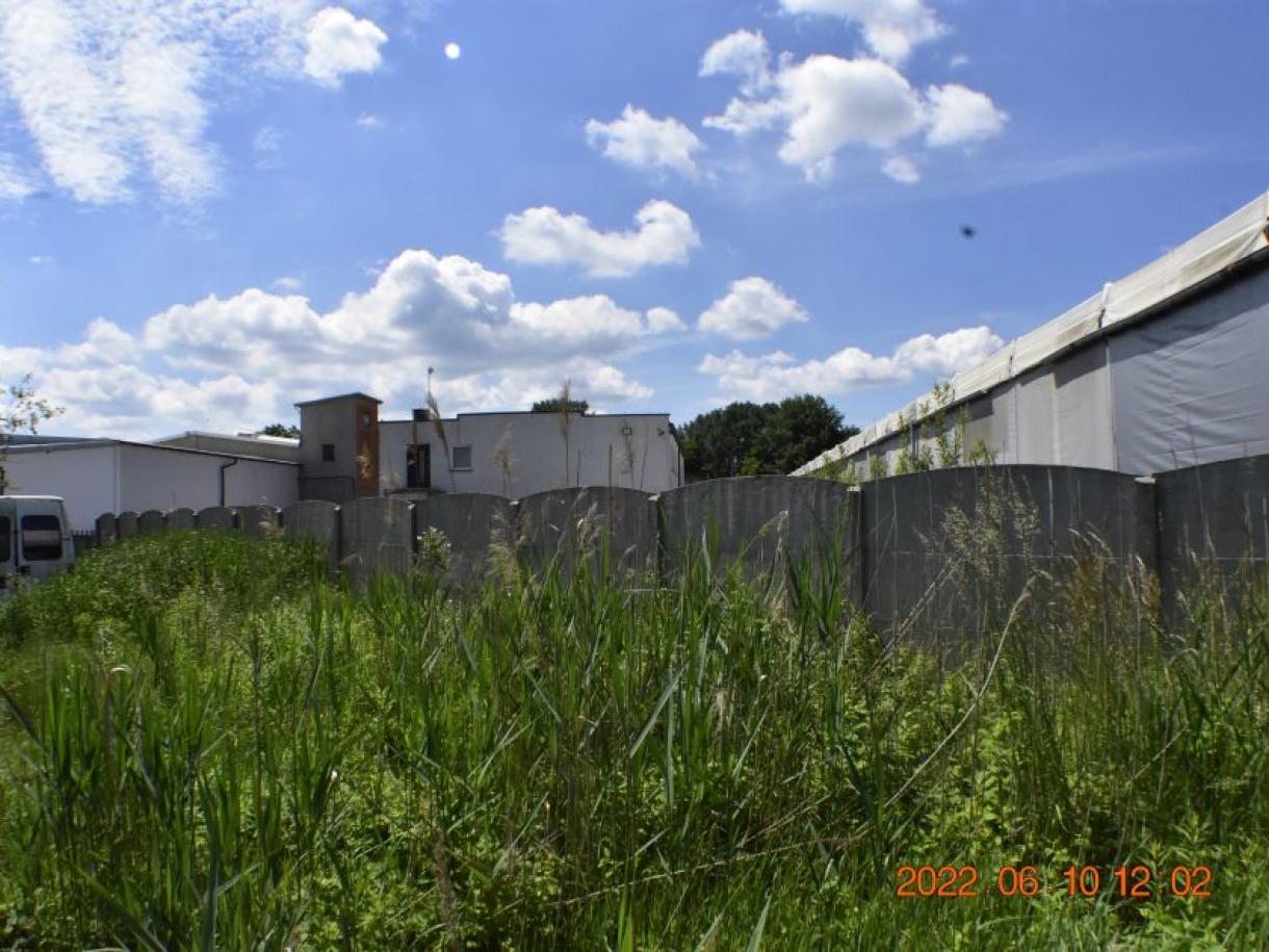 Działka w kształcie trapezu: szer. 21m i dł. 6-83m, teren płaski. Dojazd - działka 14/6 posiada pośredni dostęp (przez działki 14/7 i 15/3) do drogi publicznej, ogrodzona z jednym wjazdem, częściowo utwardzona szutrem, częściowo zabudowana budynkiem magazynowo-biurowym oraz częściowo porośnięta niezagospodarowaną zielenią. Budynek magazynowo-biurowy: obiekt wolnostojący, niepodpiwniczony, dwukondygnacyjny i przykryty płaskim dachem. Pow. zabud. 288m2, pow. całkowita 576m2, pow. użytk. 402,5m2,wys. pom. 2,36-2,47m. Budynek wybudowany około 50 lat temu w technologii tradycyjnej, ściany murowane z cegły i pustaków żużlobetonowych, stropy żelbetowe monolityczne, dach płaski dwuspadowy pokryty papą na lepiku, stolarka - PCV z szybą zespoloną; drzwi drewniane. Budynek wyposażony w instalację wodociągową, kanalizacyjną, elektryczną, wentylacji grawitacyjnej; ogrzewanie - indywidualne: centralne zasilanie z kotła na opał stały.