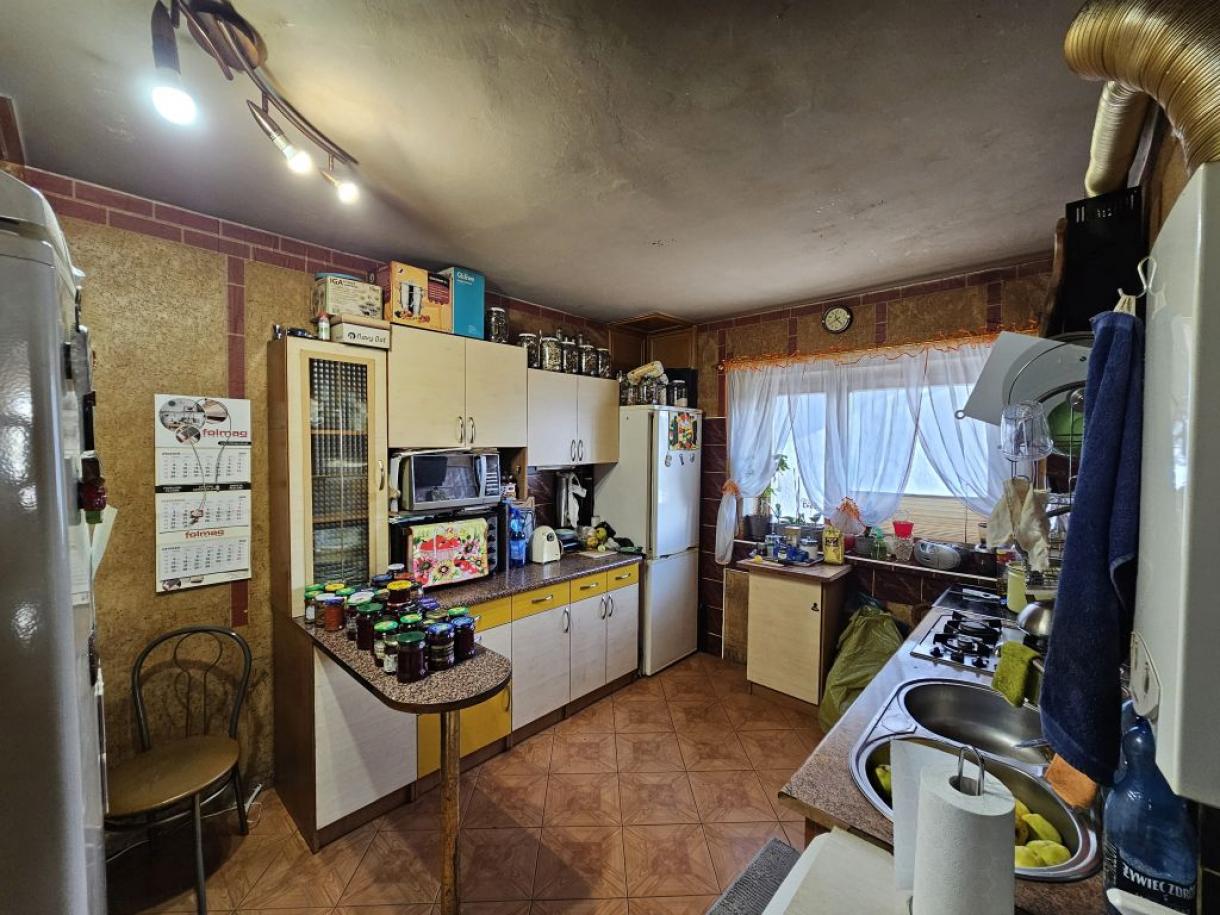 Do lokalu przynależy balkon oraz nieużytkowy strych nad poddaszem. Wejście do lokalu przez wewnętrzną klatkę schodową (wspólną dla lokalu numer 2 i numer 3). Schody na klatce schodowej żelbetowe, wykończone lastriko. instalacje wewnętrzne: elektryczna, wodociągowa, kanalizacyjna sanitarna, gazowa, ogrzewanie wody piecykiem gazowym przepływowym znajdującym się w łazience, ogrzewanie lokalu kominkiem
