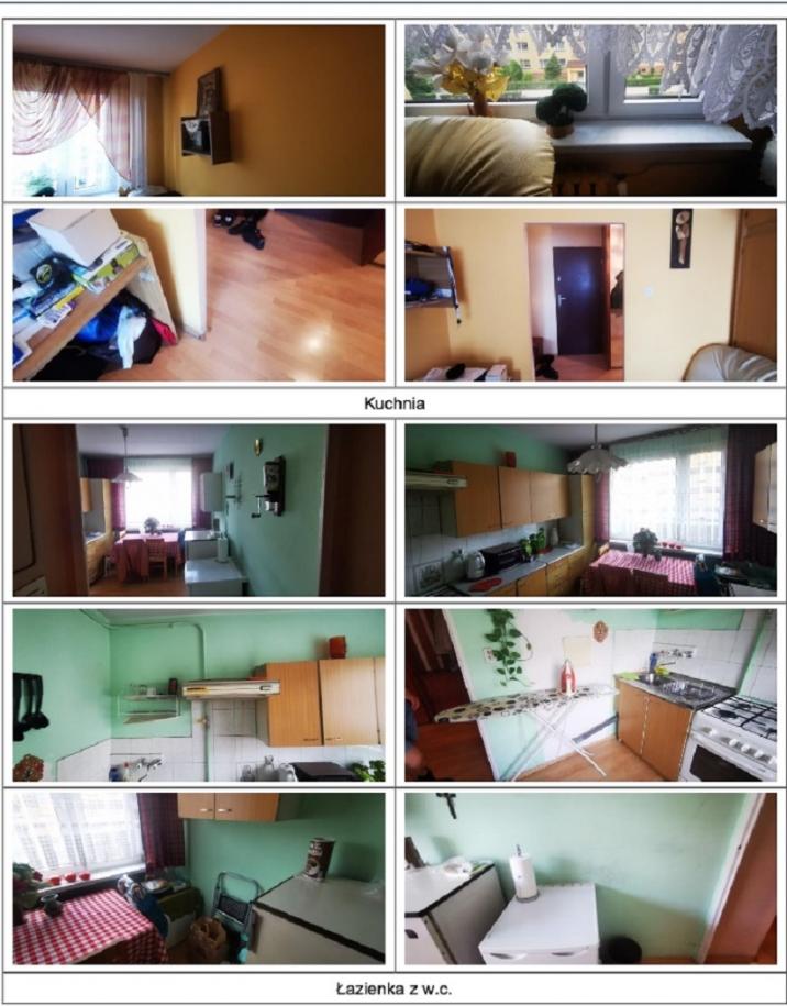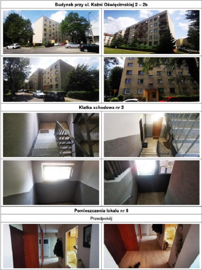 1) Przedmiotem przetargu jest 1/1 udziału w prawie własności do nieruchomości lokalowej nr 8, położonej na II. piętrze budynku przy ul. Kaźni Oświęcimskiej 2 w Zabrzu, dla której Sad Rejonowy w Zabrzu, Wydział VI Ksiąg Wieczystych prowadzi księgę wieczystą o nr GL1Z/00046410/4. Przedmiotowy lokal mieszkalny składa się̨ z 2 pokoi, kuchni, łazienki z WC, przedpokoju oraz pomieszczenia przynależnego w postaci piwnicy o powierzchni 3,93 m2. Powierzchnia użytkowa lokalu bez uwzględnienia pomieszczenia przynależnego wynosi 50,70 m2. Lokal wyposażony jest w instalację wodną, kanalizacyjną, elektryczną, gazową oraz ogrzewania c.o. i ciepłej wody z sieci miejskiej.