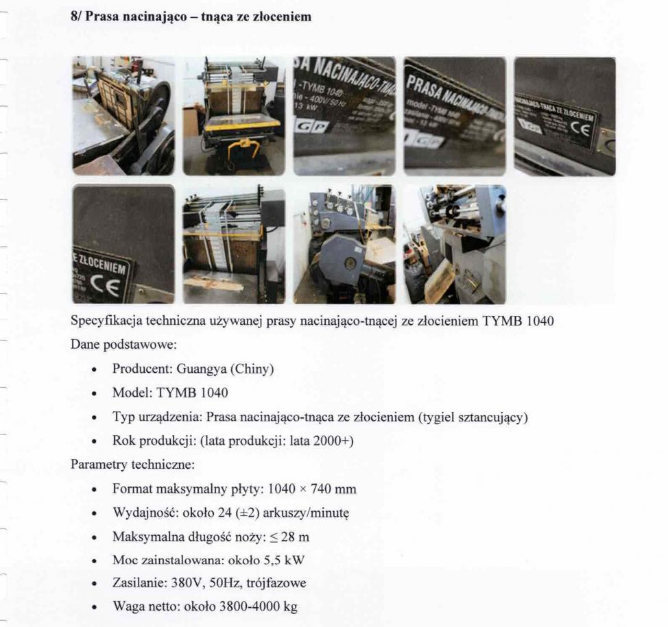 5) sztancygiel złociarka TYMB 1040;
