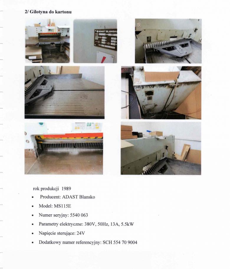 2) gilotyna do kartonu, Model: MS115E;