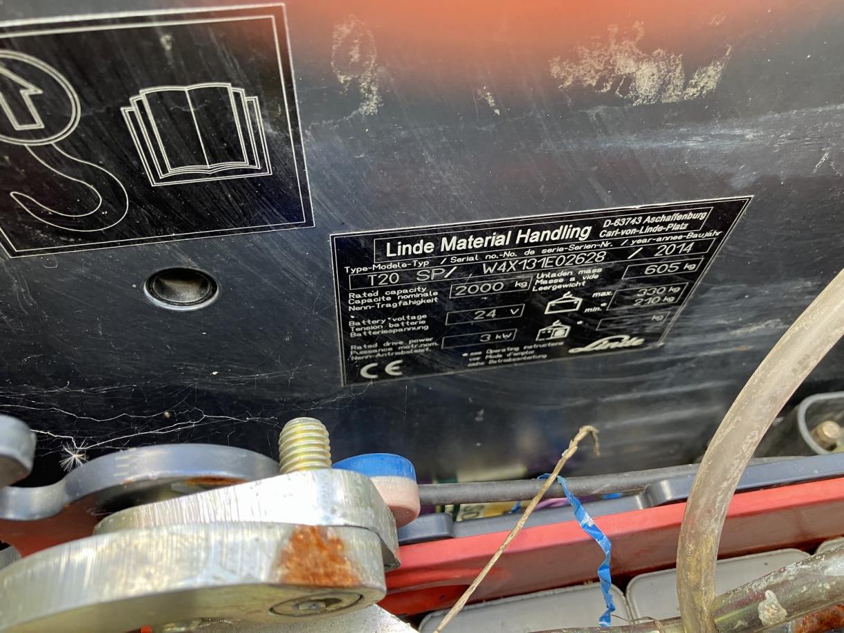 2. Wózek paletowy marki Linde model T-20, T20 W4X131E02628, rok prod. 2014 z ładowarką -
