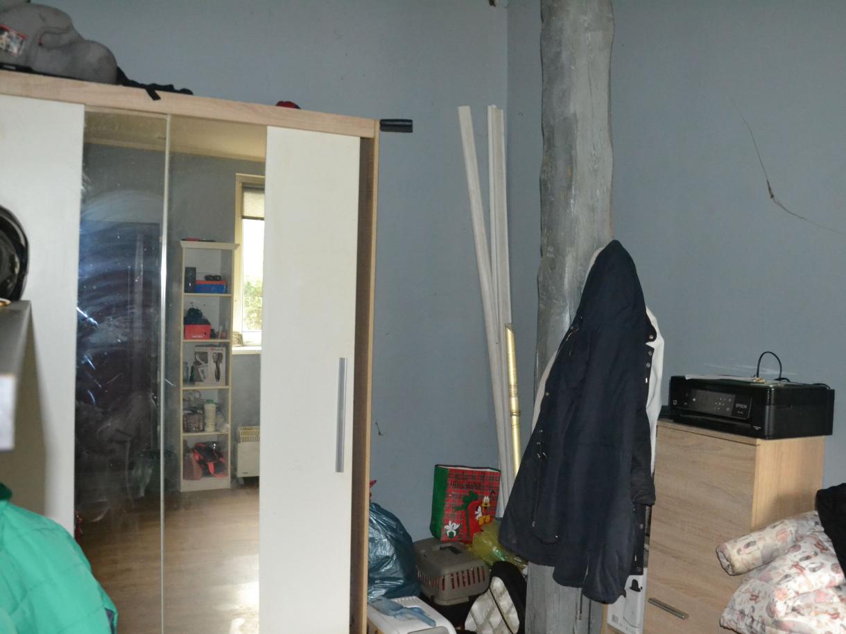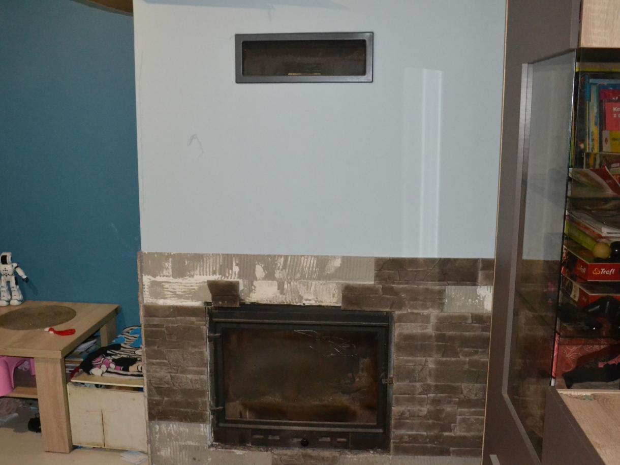 Posadzki betonowe, okładziny z paneli, w łazience płytki ceramiczne. Ściany kryte tynkiem cementowo - wapiennym, szpachlowane, malowane emulsyjnie; część ścian obłożonych płytami 2 kartonowo- gipsowymi; w łazience licowane płytkami ceramicznymi. Sufity powieszane z płyt kartonowo- gipsowych, szpachlowane i malowane emulsyjnie. Drzwi zewnętrzne stalowe; wewnętrzne płytowe 2 szt., stolarka okienna 3 szt. PCV; na poddaszu 1 okno PCV oraz 2 okna drewniane połaciowe. Grzejniki stalowe, płytowe. Obiekt wyposażony jest w instalacje: elektryczną, wodną, kanalizacyjną, centralne ogrzewanie i ciepłą wodę użytkową (z pieca na paliwo stałe w piwnicy), wentylację grawitacyjną. Dodatkowo w pokoju zmontowano kominek (z wkładem kominkowym).