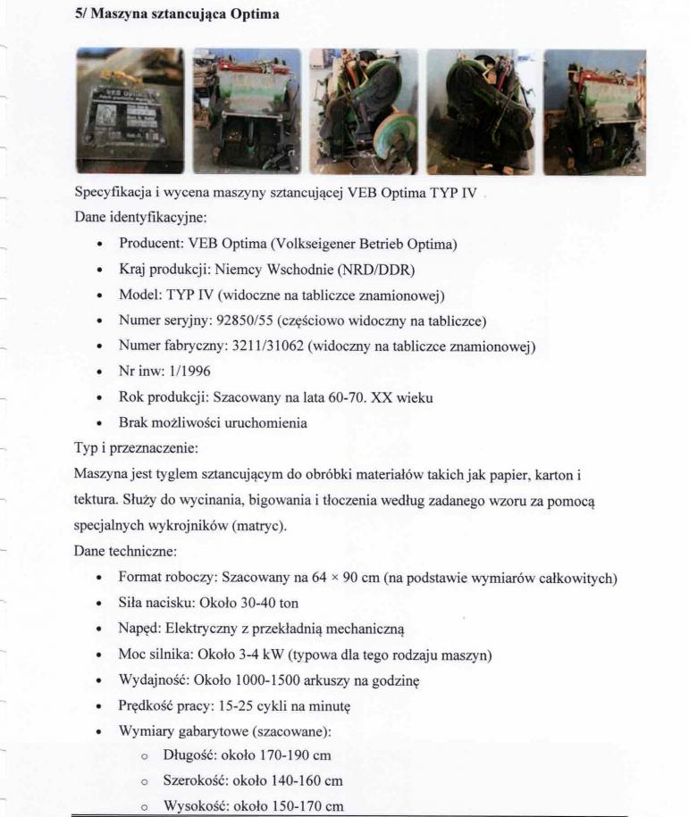 4) maszyna sztancująca OPTIMA, Producent: VEB Optima, Model: TYP IV, nr seryjny: 92850/55 - Ruchomość 4;